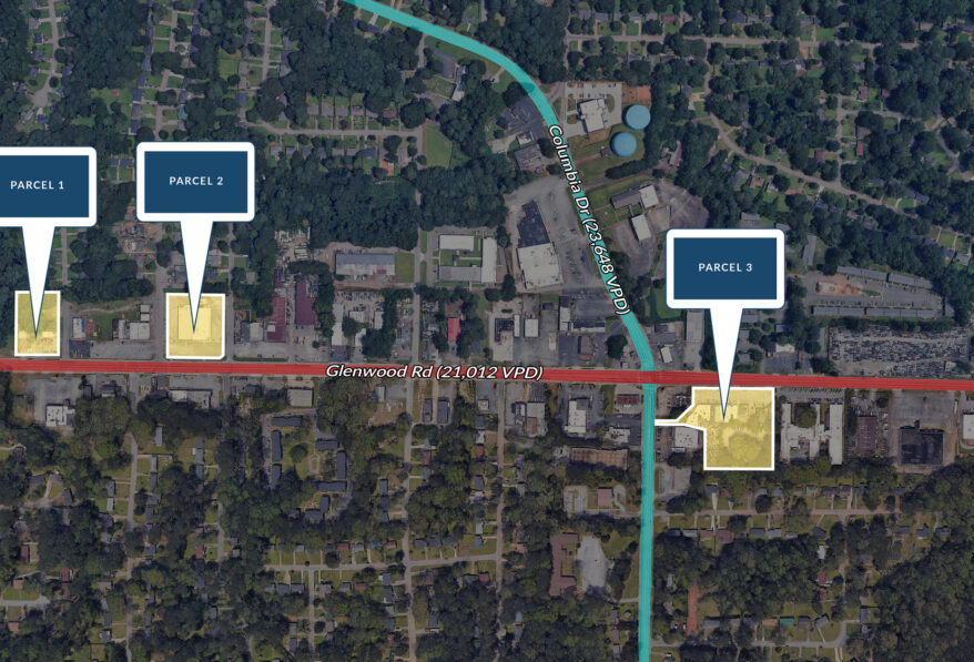 • High-Visibility Signalized Corner: Located at Glenwood Rd and Columbian Dr, with 363 feet of frontage on Glenwood (21,012 VPD) and additional access from Columbia (23,648 VPD).