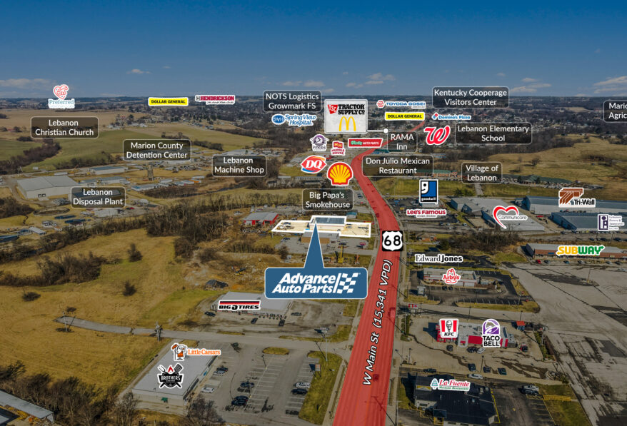 We are pleased to exclusively offer for sale the 7,000 SF Advance Auto Parts NN located at 749 West Main Street in Lebanon, KY. The investment features just under 3 years remaining on a Double Net (NN) Lease with a 58% rent increase at the option period, a current rent of $37,800, and strong upside potential, supported by a strong ~4% rent-to-sales ratio.