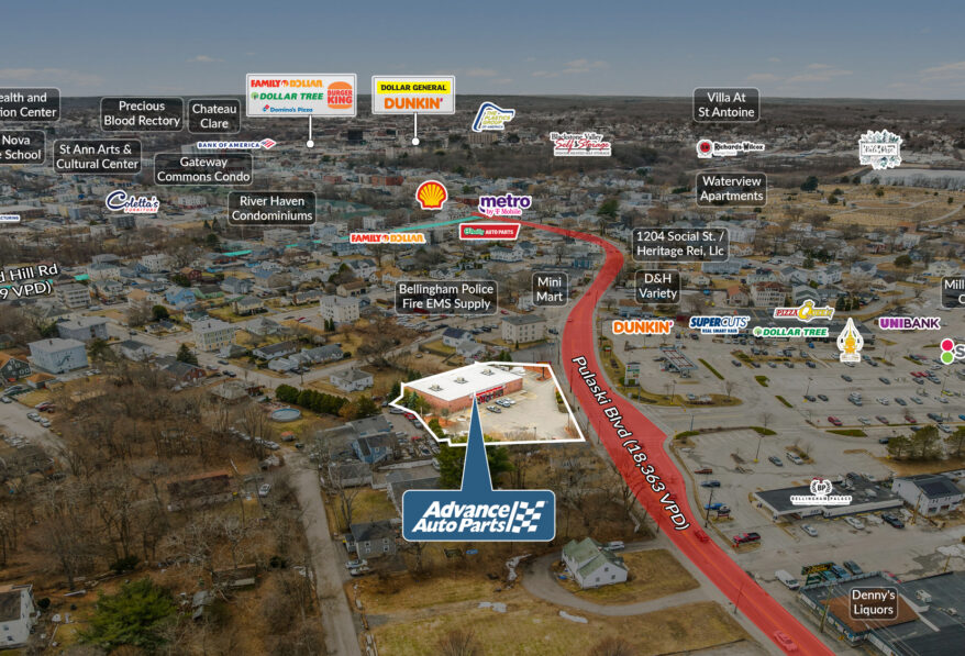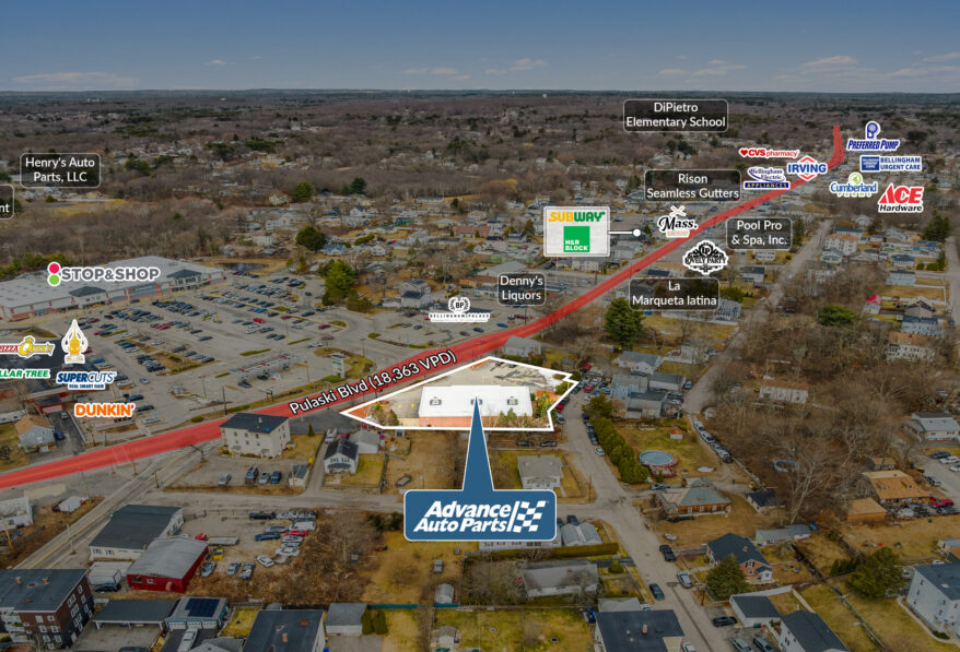 Sands Investment Group is pleased to exclusively offer for sale the 7,000 SF Advance Auto Parts NNN located at 45 Pulaski Boulevard in Bellingham, MA. This investment features a Triple Net (NNN) Lease with more than 9 years of remaining lease term, providing investors with a truly passive ownership structure and minimal landlord responsibilities. The rent has recently been renegotiated to a sustainable and comfortable level for the tenant based on store performance, reinforcing long-term stability and tenant commitment. This offering presents a secure, long-term net-lease investment opportunity backed by a nationally recognized automotive retailer.