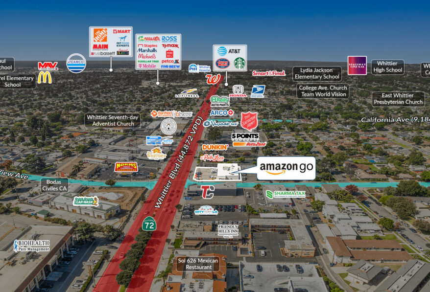 • Strategically Positioned with Prominent Signage: Extraordinary visibility to over 60,000 VPD at a hard-corner location at the intersection of Whittier Blvd and Ocean View Ave.