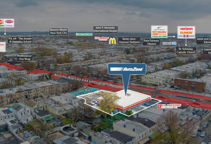 Sands Investment Group is pleased to exclusively offer the 6,816 SF Autozone Absolute NNN Ground Lease at 3513 Atlantic Ave in Brooklyn, NY. This generational New York City real estate asset is prominently situated on a signalized hard corner along Atlantic Ave, one of the borough’s busiest commercial corridors. Delivered in 2024, the property features approximately 13 years remaining on an Absolute Triple Net (NNN) Ground Lease, offering zero landlord responsibilities and long-term, passive income. Can be sold individually or part of a portfolio. Contact brokers for more details.