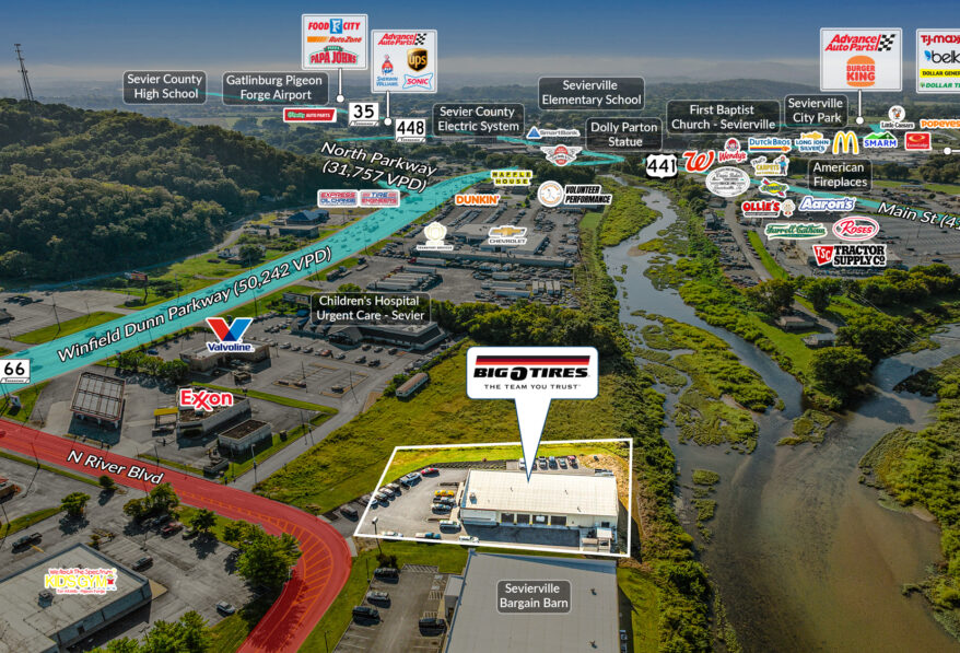 • Positioned on Winfield Dunn Pkwy (50,242 VPD) in Sevierville’s main retail hub, benefiting from strong local demand and regional tourism.