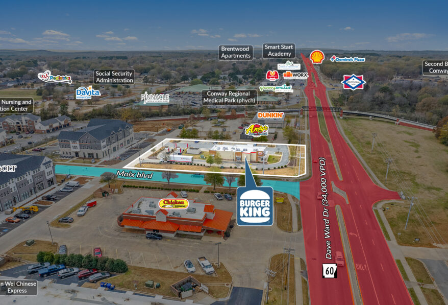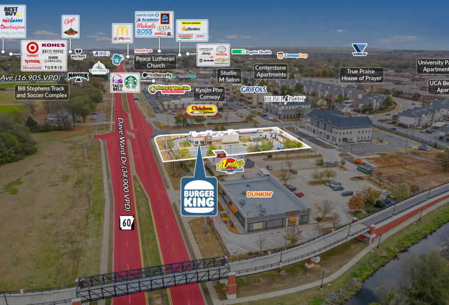 Sands Investment Group is pleased to exclusively offer for sale the 3,314 SF Burger King Absolute NNN located at 2325 Dave Ward Drive in Conway, AR. The asset is secured by a new 11-year Absolute Triple Net (NNN) Lease backed by Flis Enterprises, a proven 23-unit Burger King franchisee. The lease structure provides a strong inflation hedge, featuring 10% rent increases every five years, including throughout all option periods, ensuring consistent income growth and long-term stability. This combination of a reliable operator and a durable lease makes this an exceptional investment opportunity.
