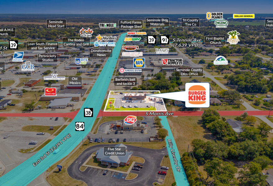 Sands Investment Group is pleased to exclusively offer a 2,900 SF Burger King NNN Asset at 303 S Morris Avenue in Donalsonville, GA. The property features 18+ years remaining on a Triple Net (NNN) Lease with zero landlord responsibilities and 10% rent increases every 5 years, providing strong, stable returns and a solid hedge against inflation.
