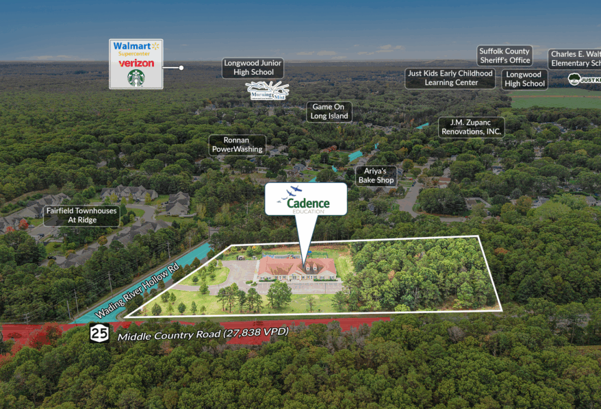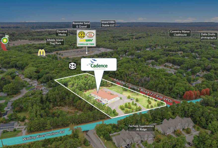 Sands Investment Group is pleased to exclusively offer for sale the Cadence Education NNN Asset located at 1400 Middle Country Rd in Middle Island, NY. This opportunity features 1 year remaining on the lease term with favorable 2% annual rent escalations. The property is ideally situated in a highly desirable area with median home values exceeding $380,000 and experiencing consistent year-over-year appreciation, making it a strong and stable investment opportunity.