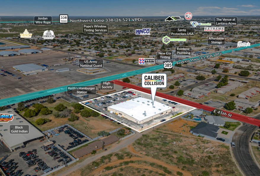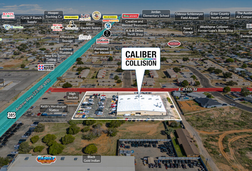 Sands Investment Group is pleased to exclusively present for sale a 23,052 SF Caliber Collision Absolute NNN Asset located at 150 E 45th St, Odessa, TX. The lease is corporately guaranteed and backed by a strong tenant, featuring 13+ years of base term remaining, 10% rent increases every five years, and an Absolute Triple Net (NNN) Lease structure, providing zero landlord responsibilities. This property offers a secure, long-term investment opportunity with a reliable income stream and strong growth potential.