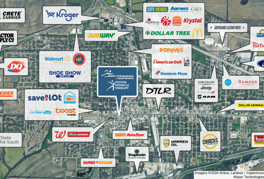 Sands Investment Group is pleased to exclusively offer for sale the 8,224 SF Delta Orthopaedics & Fenter Physical Therapy NNN medical facility located at 200 W Broadway Street in West Memphis, Arkansas. The offering features two well-established medical tenants executing a 5-year sale-leaseback, providing immediate and stable income. Delta Orthopaedics brings over 15 years of operating history and operates a two-suite practice staffed by three physicians and five nurse practitioners. This property presents a compelling investment opportunity backed by experienced operators and long-term healthcare demand.
