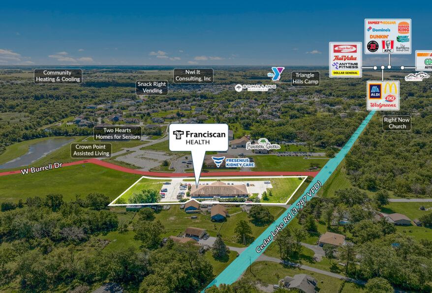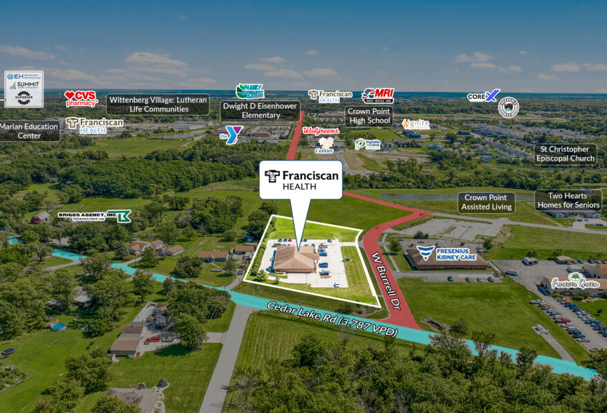 • Established Healthcare System: Franciscan Alliance operates one of the largest and most respected healthcare systems in the Midwest, encompassing 12 hospital campuses, over 850 primary and specialty care providers, and more than 260 locations across Indiana and Illinois. The subject property is strategically located less than two miles from Franciscan Health Crown Point Hospital, a $200 million facility investment, providing strong regional healthcare support and tenant stability.