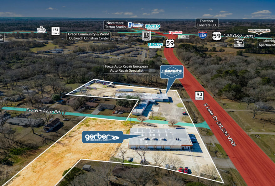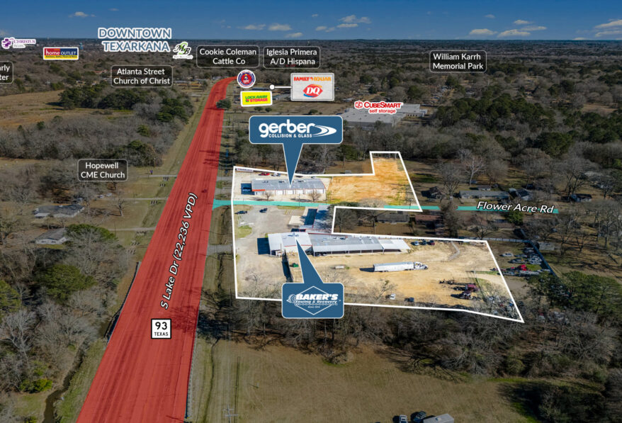 Sands Investment Group is pleased to exclusively offer for sale the 24,550 SF Gerber Collision & Glass and Baker’s Towing & Recovery located at 3327 & 3407 S Lake Drive in Texarkana, TX. This offering features a dual-tenant, net-leased automotive services property anchored by Gerber Collision & Glass, a national operator, providing minimal landlord responsibilities and stable in-place income across both tenants.
