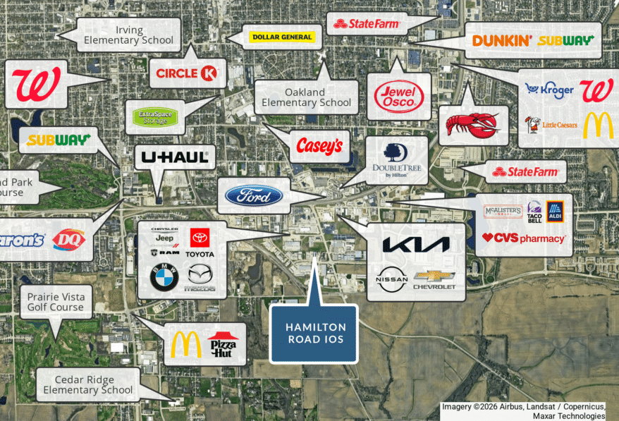 • Strategically located between Peoria, 40 miles to the west, Springfield, 65 miles to the southwest, and Champaign, 50 miles to the east, the property offers strong regional connectivity that supports service-oriented industrial and equipment users.