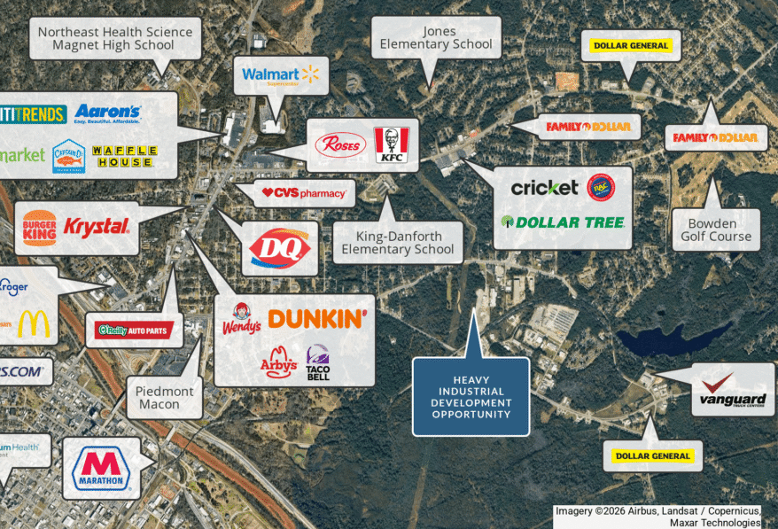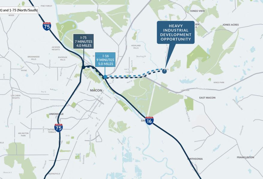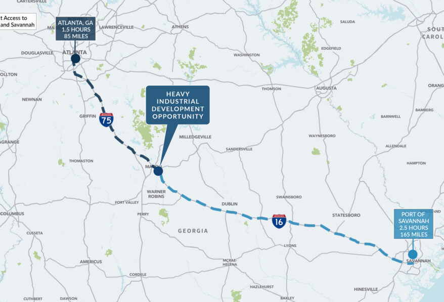 • Located approximately 2 miles from I-16, 4 miles from I-75, 80 miles from Hartsfield-Jackson Atlanta International Airport, and 165 miles from the Port of Savannah via I-16.