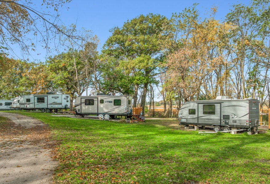 • Amenities: 82’x34′ swimming pool (new pump house). remodeled lodge and public shower house, brand-new playground (2025), basketball, gaga pit, horseshoes, cornhole, concrete tournament pads, walking trails, and a nature preserve setting surrounding a waterfowl lake; gated entry and 8-camera security system.