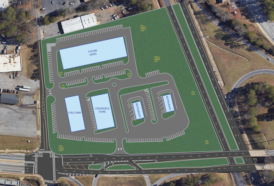 • 7.8-Acre Mixed-Use Development Opportunity: Conceptual site plan allocates ±3.4 acres for a hotel, ±2.4 acres for a gas/c-store, and two ±1 acre retail pad sites.