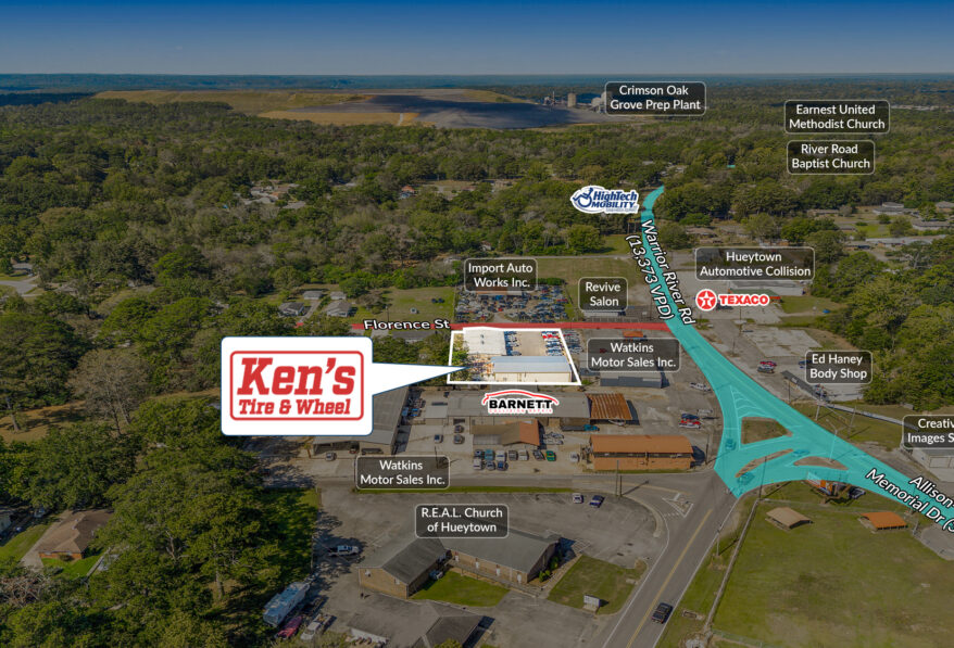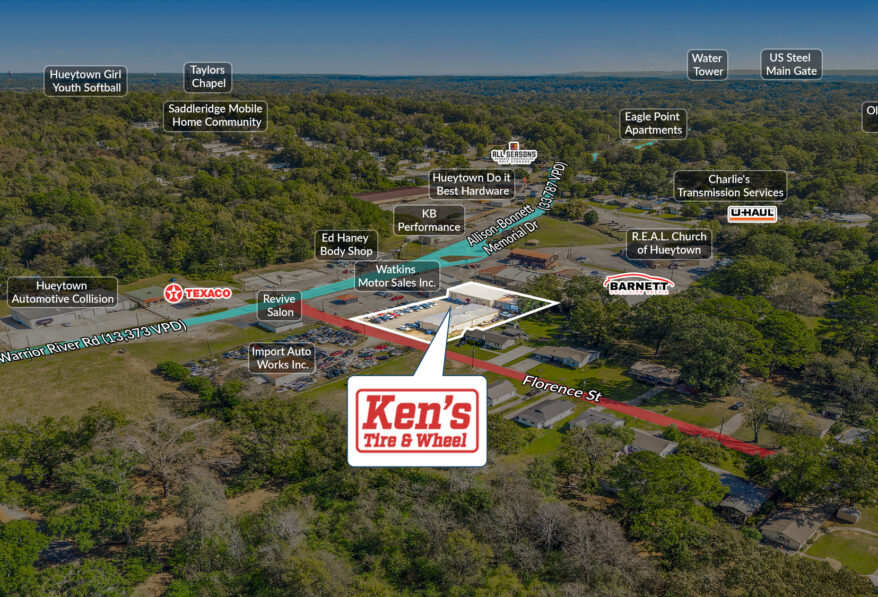 Sands Investment Group is pleased to exclusively present for sale the 10,362 SF Ken’s Tire & Wheel Automotive Asset located at 99 Florence St in Hueytown, AL. This offering presents an ideal opportunity for an owner-operator seeking to expand in the Birmingham market. Both business and real estate are available, providing immediate control over operations and land use. A prime investment with significant upside potential.