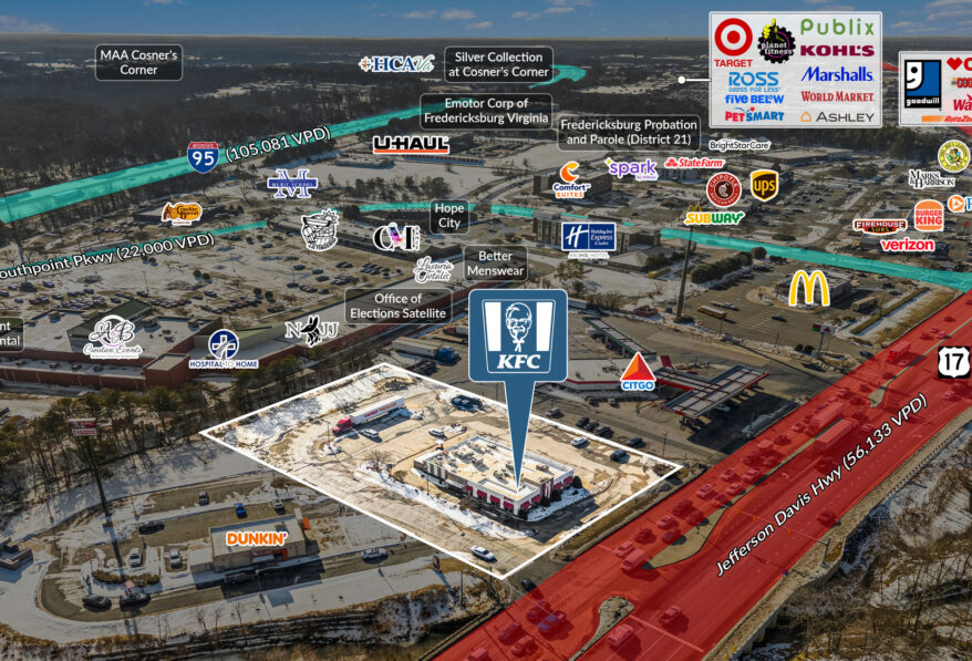 Sands Investment Group is pleased to exclusively offer for sale the 5,629 SF KFC Absolute NNN Asset located at 10243 Patriot Highway in Fredericksburg, VA. The property is secured by an Absolute Triple Net (NNN) Lease with approximately 18+ years of primary term remaining, offering investors a long-term, stable, and passive investment opportunity. With minimal landlord responsibilities and the strength of a globally recognized quick-service restaurant brand, this asset provides predictable cash flow and long-term income security in a well-established retail corridor.