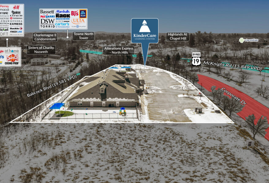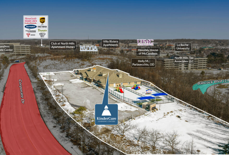 Sands Investment Group is pleased to exclusively offer for sale the 11,990 SF KinderCare NNN Asset located at 5400 Corporate Drive in Pittsburgh, PA. KinderCare is the largest provider of early education and child care in the U.S., operating more than 2,700 centers nationwide. The center is strategically positioned approximately 10 miles from downtown Pittsburgh and within a 30-minute drive of Pittsburgh International Airport (PIT), offering strong accessibility, surrounding population density, and a compelling investment opportunity backed by an established national tenant.
