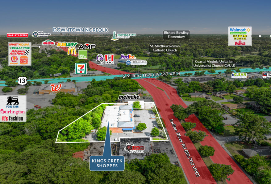 • Located in a Dominant Retail Corridor: Situated along a highly active retail stretch of Indian River Road, adjacent to a Food Lion–anchored center and other national tenants, reinforcing consistent traffic and tenant demand.