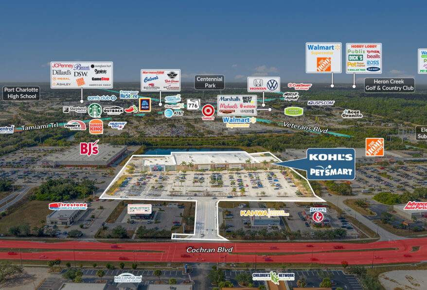 Sands Investment Group is pleased to exclusively offer for sale the 109,509 SF Kohl’s & PetSmart Asset located at 19530 – 19600 Cochran Boulevard in Port Charlotte, FL. This offering features a highly attractive low single-digit Kohl’s rent of $7.28 Triple Net (NNN) PSF. Kohl’s now has 2.1 years remaining on the current term, with a substantial 10% rent increase scheduled for January 2028. PetSmart further strengthens the stability of the asset with 7.5 years remaining on its lease and a 5% rent increase in June 2028. Kohl’s was a 97th percentile performer nationally in 2025, and PetSmart was a 95th percentile performer nationally. Together, these strong credit tenants, favorable lease terms, and built-in rent escalations create an exceptional long-term investment opportunity.