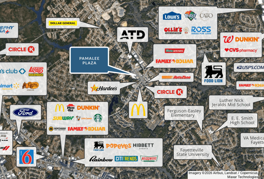 • Pamalee Plaza is strategically positioned near major thoroughfares, offering convenient connectivity to downtown Fayetteville, Interstate 295, and U.S. Highway 401. The surrounding area features a dense mix of retail, service, and dining uses, making the property well-suited for a community-oriented retail tenant mix.