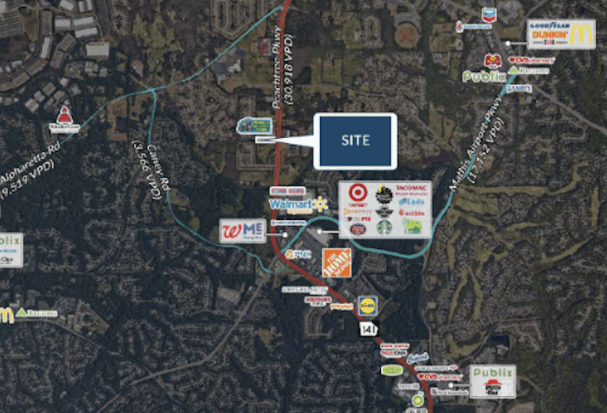 • Signalized Corner Location: Signalized corner on Peachtree Parkway (30K VPD)