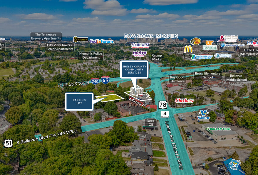 • The site has a central location, just 10 miles from Memphis International Airport, 1.5 miles from the rapidly expanding Medical District, and 2.5 miles from downtown Memphis.