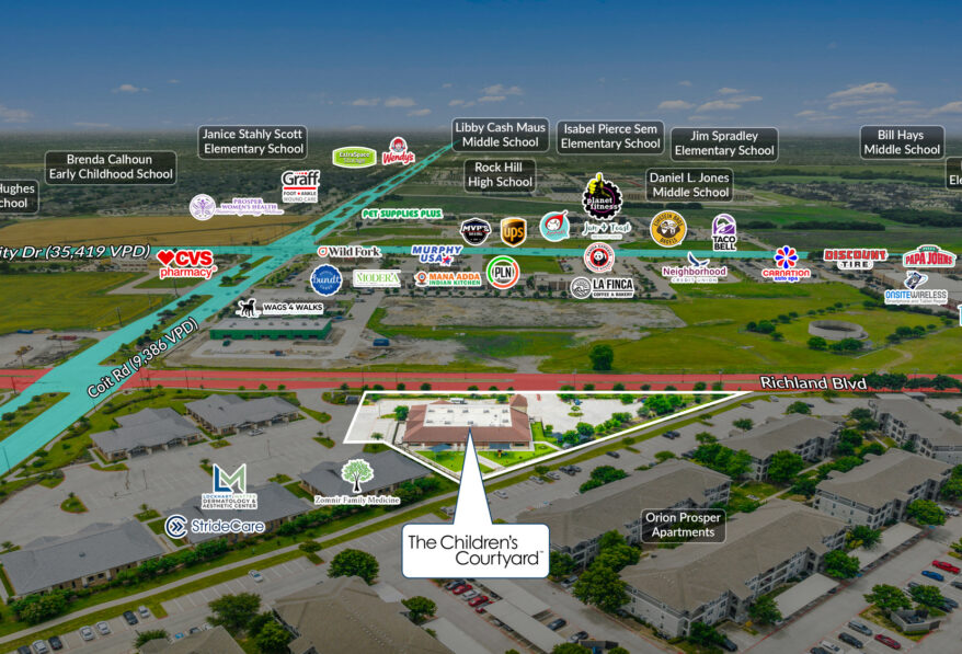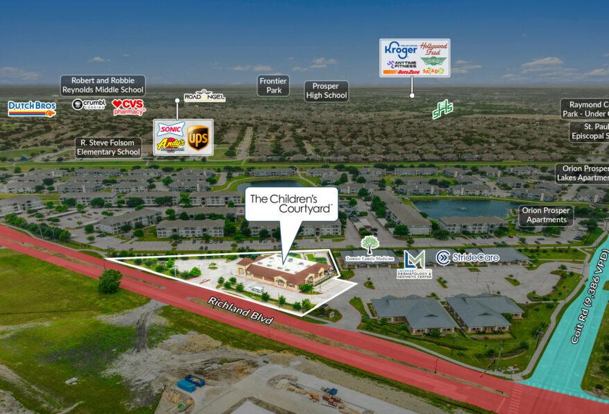 Sands Investment Group is pleased to exclusively offer for sale the 12,415 SF The Children’s Courtyard Absolute NNN located at 2301 Richland Boulevard in Prosper, TX. This deal includes an asset which is 100% leased to The Children’s Courtyard on an Absolute Triple Net (NNN) Lease with zero landlord responsibilities – 6+ years of term remaining, providing for a secured investment.