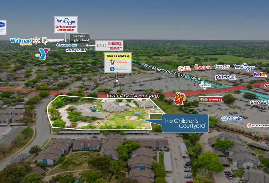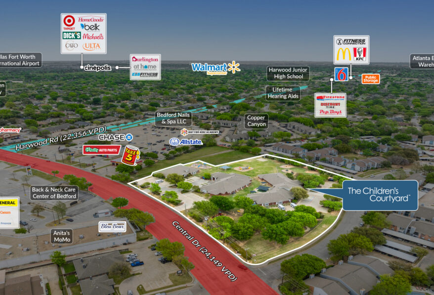 Sands Investment Group is pleased to exclusively offer for sale The Children’s Courtyard NNN, a three-building property totaling 29,015 SF located at 2816, 2808 & 2800 Central Drive in Bedford, TX. This investment features approximately 5 years remaining on a Triple Net (NNN) Lease, providing a stable income stream with zero landlord responsibilities. The established childcare operator and long-term occupancy provide a secure, passive investment opportunity.