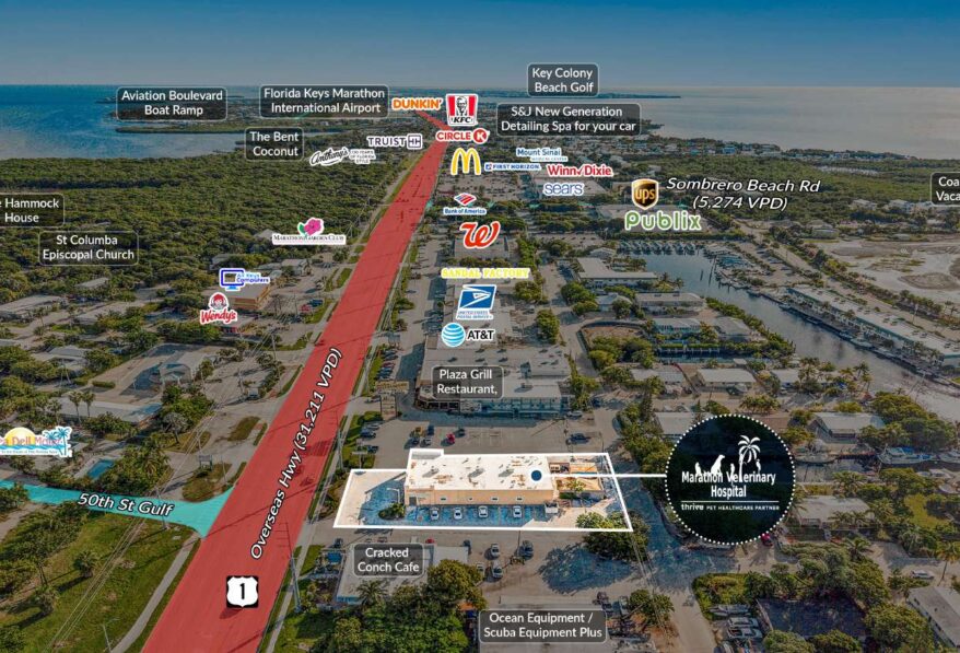 Sands Investment Group is pleased to exclusively offer for sale this 6,000 SF single-tenant Thrive Pet Healthcare NNN Asset located at 5001 Overseas Hwy in Marathon, FL. The property is leased to Thrive Pet Healthcare (a 400+ unit operator), which has executed the first of four (5-year) renewal options, featuring 3% annual rent escalations and minimal landlord responsibilities. The property has dedicated parking and is located on a well-trafficked corridor with direct access and visibility from the main thoroughfare. With consistent rent growth and reliable cash flows, this offering is a rare opportunity to acquire the largest credit-backed veterinary asset in a supply-constrained Florida Keys market.