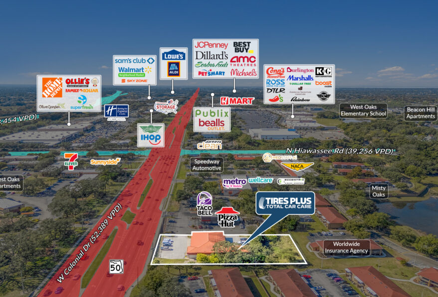 • High-Performing Retail Corridor: Located along West Colonial Drive (State Road 50), one of Orlando’s most heavily traveled thoroughfares, with excellent visibility.