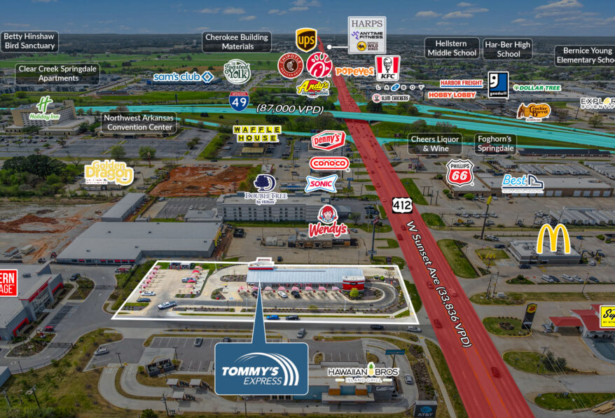 Sands Investment Group is pleased to exclusively offer for sale the 6,194 SF Tommy’s Express Car Wash located at 4571 W Sunset Avenue in Springdale, AR. This turnkey business and real estate opportunity is offered at a significant discount to replacement cost. The $6.5 million asking price reflects roughly a 19% discount compared to the estimated $8 million replacement cost. This allows investors to acquire a fully operational, income-producing Tommy’s Express Car Wash at a $1.5 million savings, while avoiding the delays, permitting challenges, and construction risks associated with ground-up development, making it a compelling and differentiated investment opportunity
