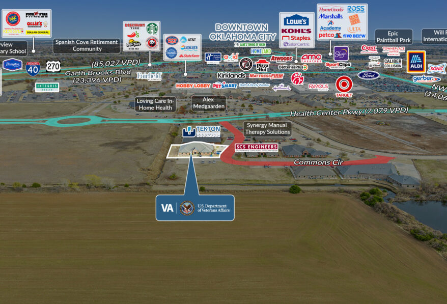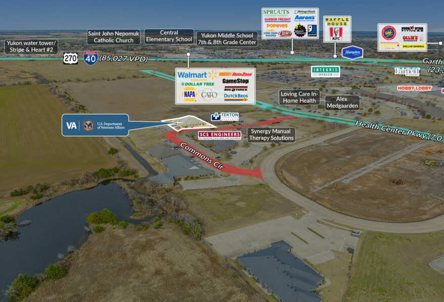 Sands Investment Group is pleased to exclusively offer for sale the 6,798 SF VA Clinic at 1808 Commons Circle in Yukon, OK. This offering presents a rare, income-secure opportunity with an investment-grade federal tenant, the U.S. Department of Veterans Affairs, providing exceptional credit strength and long-term reliability. Strategically located in the rapidly expanding Yukon/OKC growth corridor, one of the fastest-growing suburban markets in the Oklahoma City metro, the property benefits from strong population growth and robust economic development.