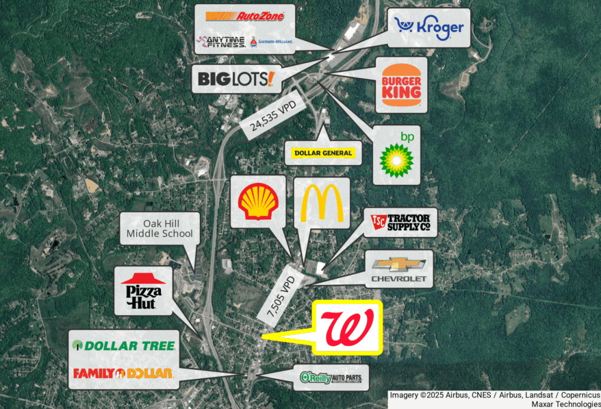 • Surrounding Demand Drivers: Strategically located near US Highway 19 (24,535 VPD), Oak Hill High School, Fayette Institute of Technology, and National Retailers, including Tractor Supply, McDonald’s, Dollar Tree, and Advance Auto Parts.