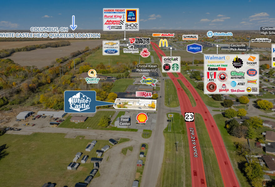 Sands Investment Group is pleased to exclusively offer for sale the 2,200 SF White Castle Ground Lease located at 24599 US Highway 23 South in Circleville, Ohio, approximately 20 miles south of Columbus. The property is secured by a corporate-guaranteed ground lease backed by White Castle System, Inc., which has successfully operated at this location since 1999. Positioned directly on US Highway 23, the site offers strong visibility and access within the Columbus MSA.