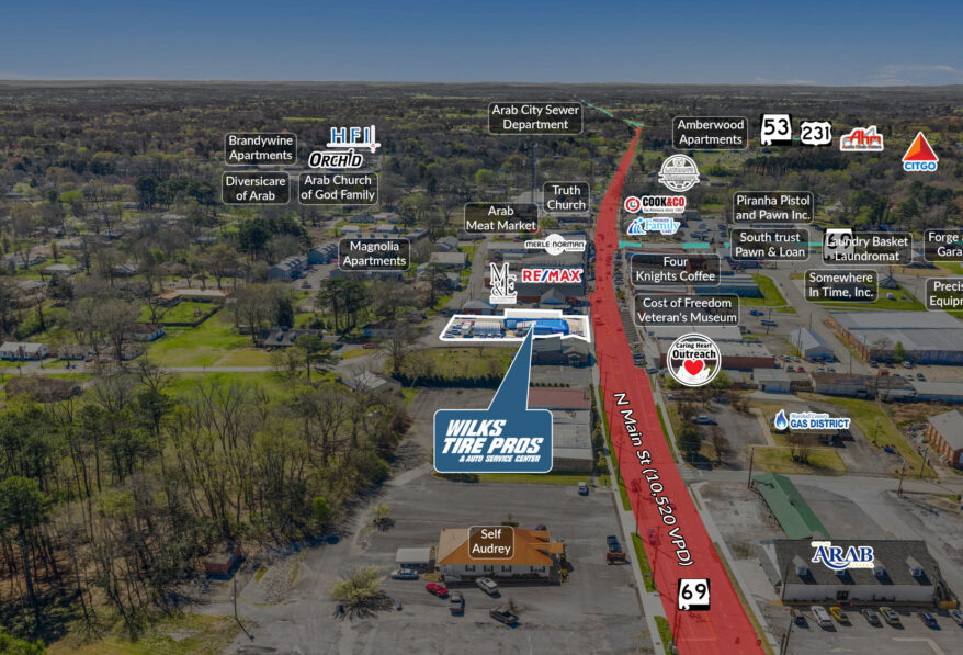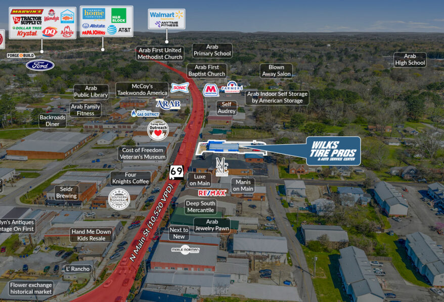 Sands Investment Group is pleased to exclusively offer for sale the 7,040 SF Wilks Tire Pros & Auto Service Center located at 152 N Main Street in Arab, AL. This deal includes both the business and real estate, providing a turnkey opportunity with immediate control over operations and land use, and the property sits on approximately 1.34 acres across 3 parcels, offering excellent visibility, easy access, and consistent local traffic.